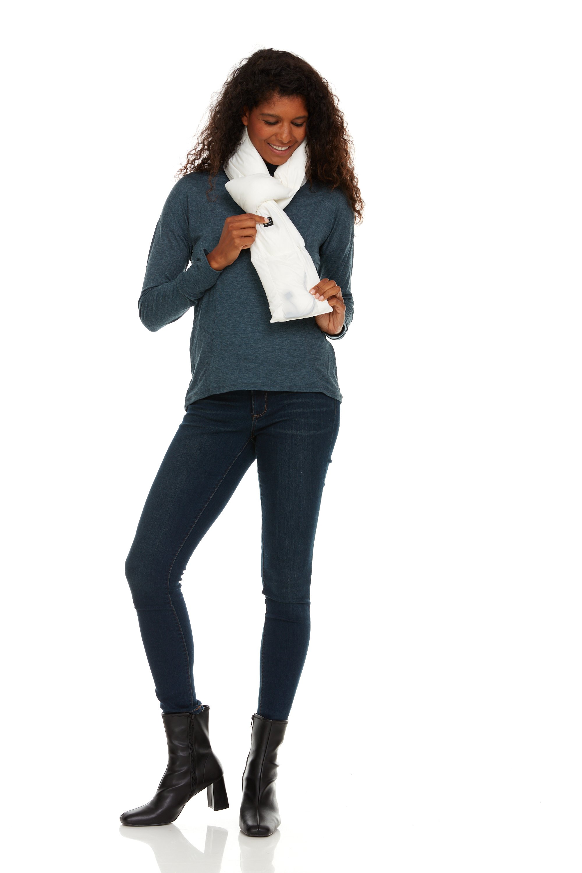 But what sets the Helios Heated Scarf apart is its innovative heating technology. Equipped with three adjustable heat levels ranging from a soothing 113F to a toasty 149°F, you can effortlessly customize your comfort based on your preference. The dual-button controller allows for easy temperature adjustments, giving you full control over your warmth.