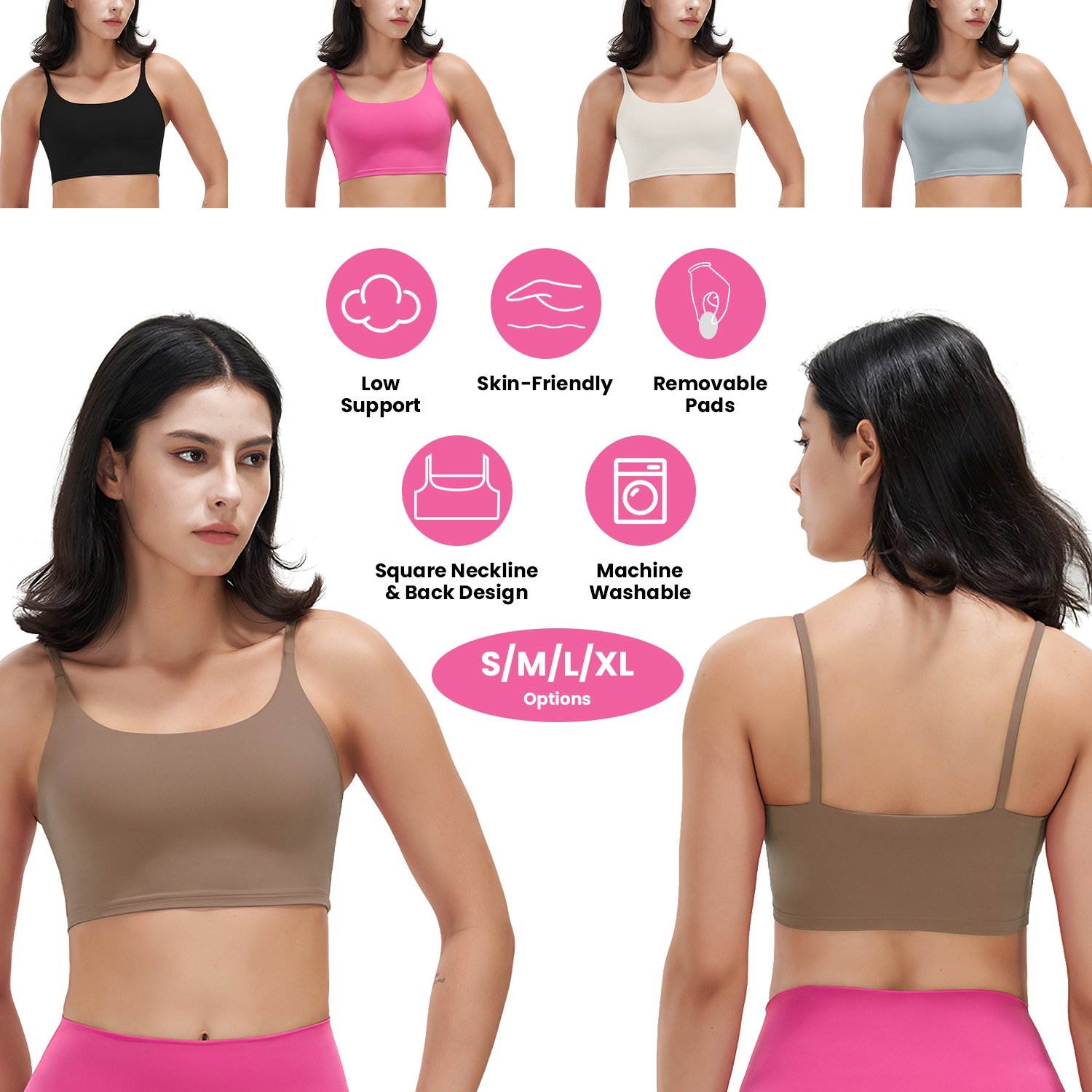 Home > Women Strap Sport Bras Padded Strappy Crop Square Neck Low Impact Bras Sexy Fitness Tank Tops with Removable Pads Flat Straps for Gym Yoga Workout Run