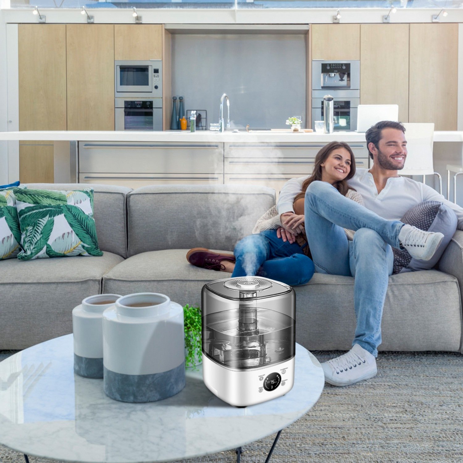5L/1.32Gal Ultrasonic Air Humidifier Electric Mist Humidifier with Temperature Humidity Sensor Timer Setting UV Light Adjustable Mist Level Quiet Esse