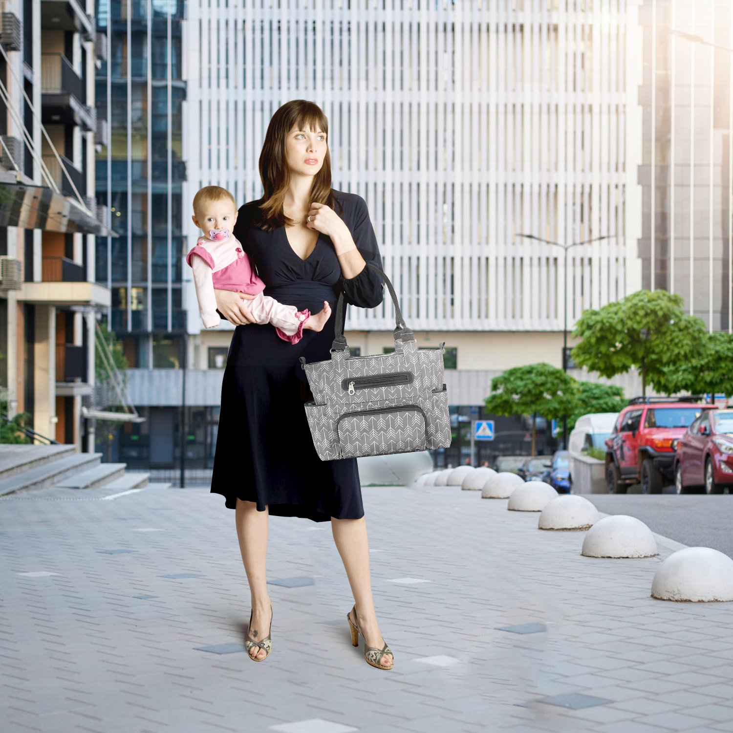 If you\'re looking for a large do-it-all diaper bag set, this is it! Features 12 roomy compartments, you can pack baby essentials, such as diapers, baby clothes, milk powder cans, diapers, feeding bottles, snacks etc.. Moreover, the small handbag and purse are roomy for mummies to carry their personal essentials, such as phones, keys, lipsticks, sun cream, glasses etc.. The included 2pcs burp cloth and 1pc versatile mesh bag also provide much more convenience when going out with our babies! Also features hand-strap style and 2 hook straps for stroller, widely used for daycare, work, shopping or on a trip.