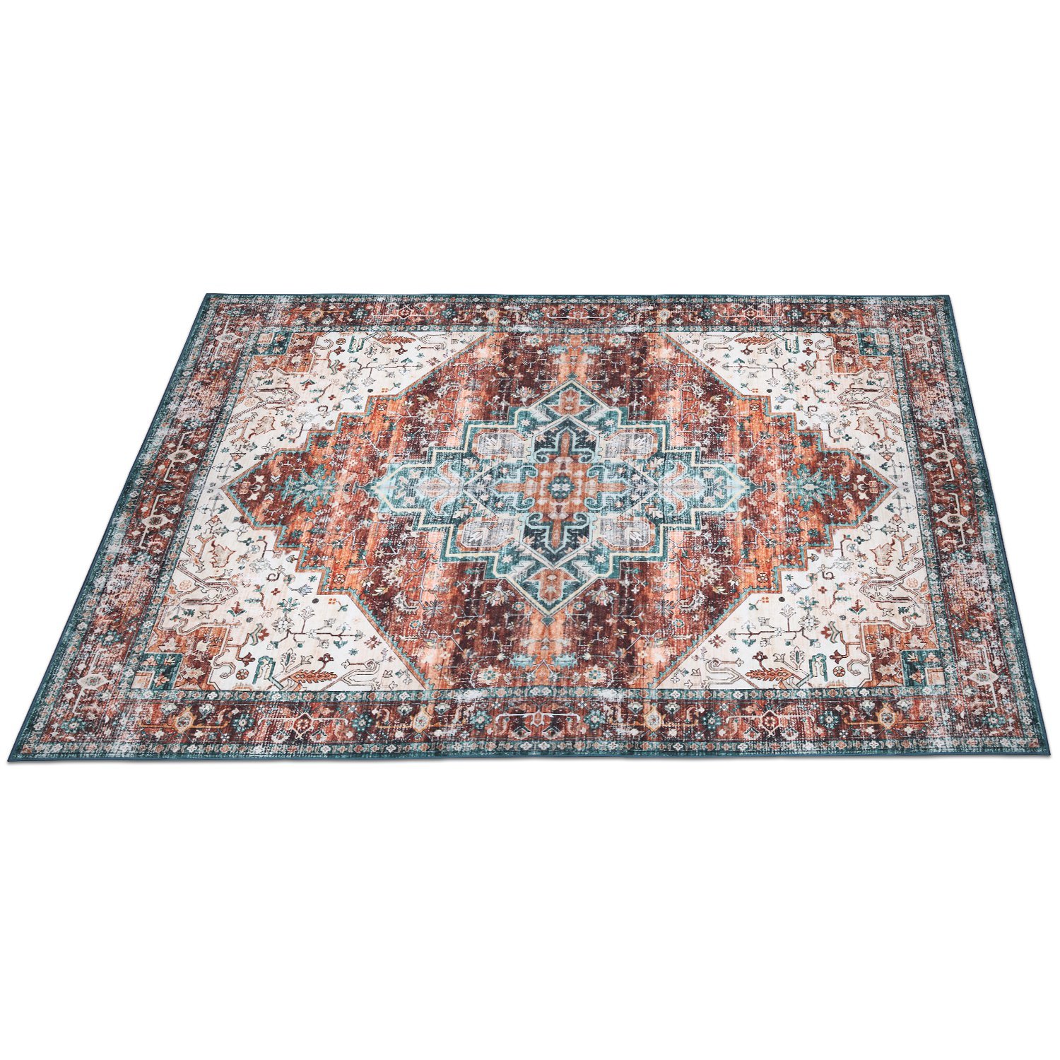 8x10FT Vintage Area Rug Modern Non Slip Carpet Boho Low Pile Soft Rug Waterproof Machine Washable Rug for Living Room Bedroom Kitchen Dining Room Unde
