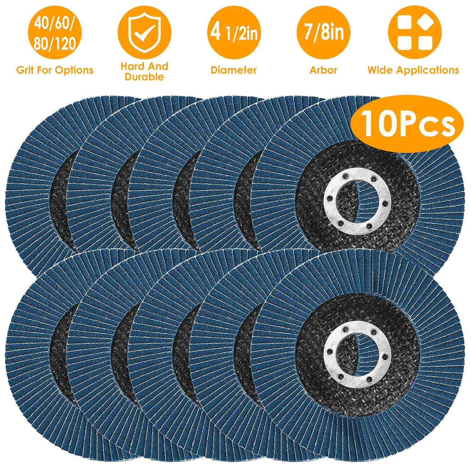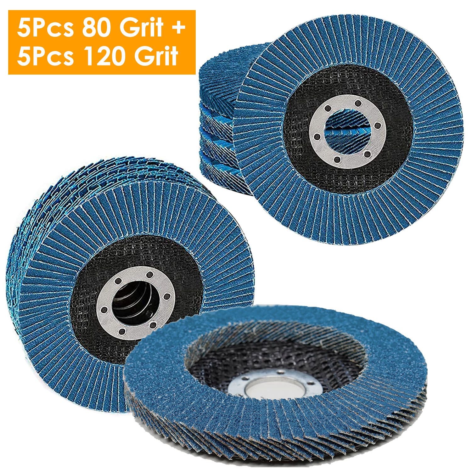10Pcs Flap Wheel Discs 80 120 Grit 4 1/2”x7/8” Flap Sanding Disc Grinding Wheel Abrasive Polishing Tool for Angle Grinder