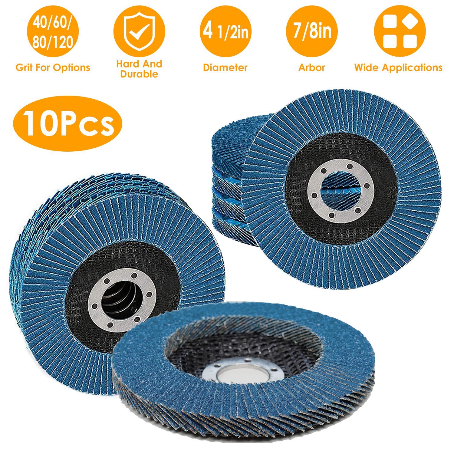 Home > 10Pcs Flap Wheel Discs 80 120 Grit 4 1/2”x7/8” Flap Sanding Disc Grinding Wheel Abrasive Polishing Tool for Angle Grinder