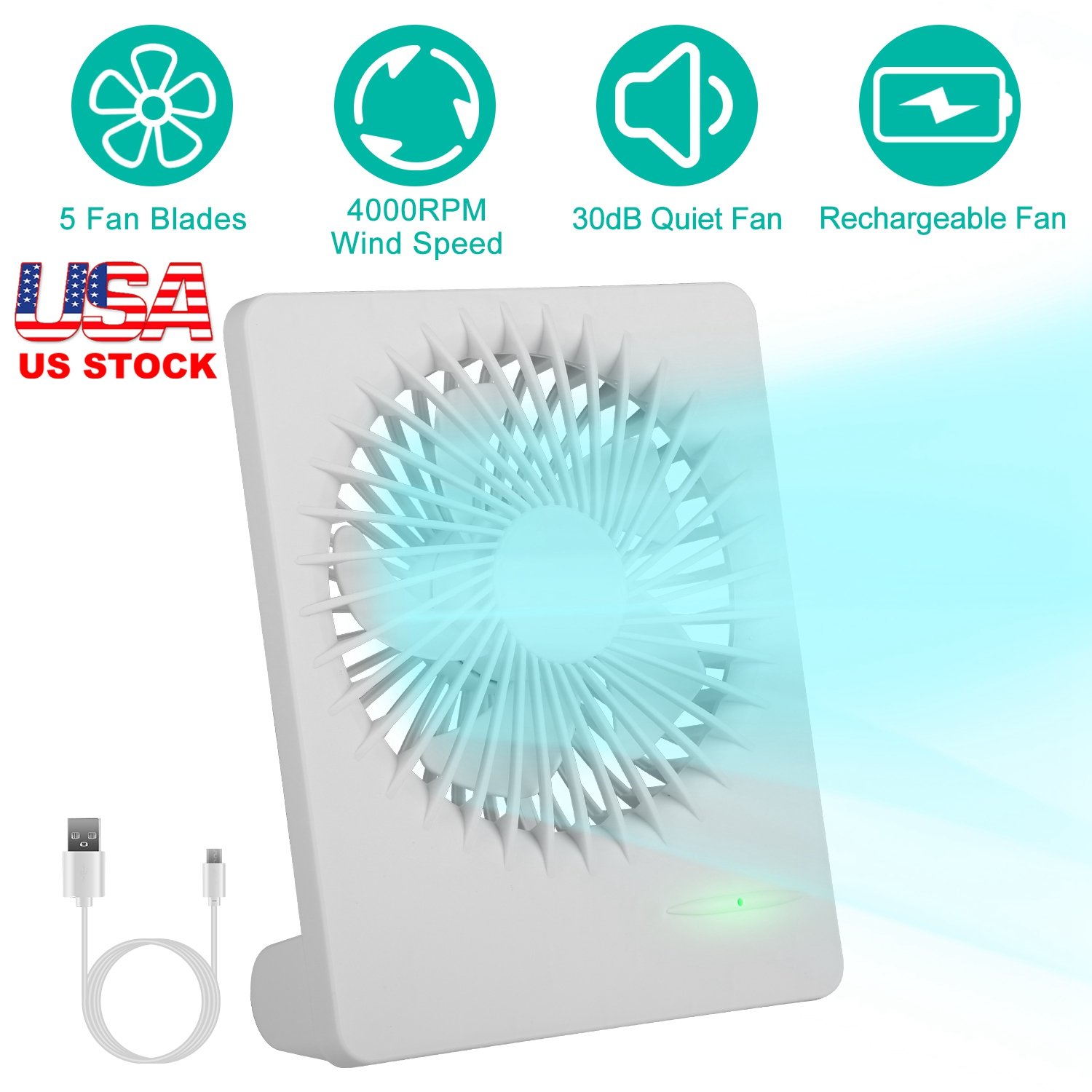 The hot summer is coming, our desk fan is the best cooling partner with you! 5 Fan blades cool you down quickly. Lightweight and compact, you can carry it from one room to another room. Rechargeable and portable fan brings you much convenience when travel. Support multiple power supply, the USB fan is compatible with computers, laptops, car charger etc.. Stably rest on the table and low noise, our fan won’t disturb you. Perfect summer cooling gift for you, your friends or family!