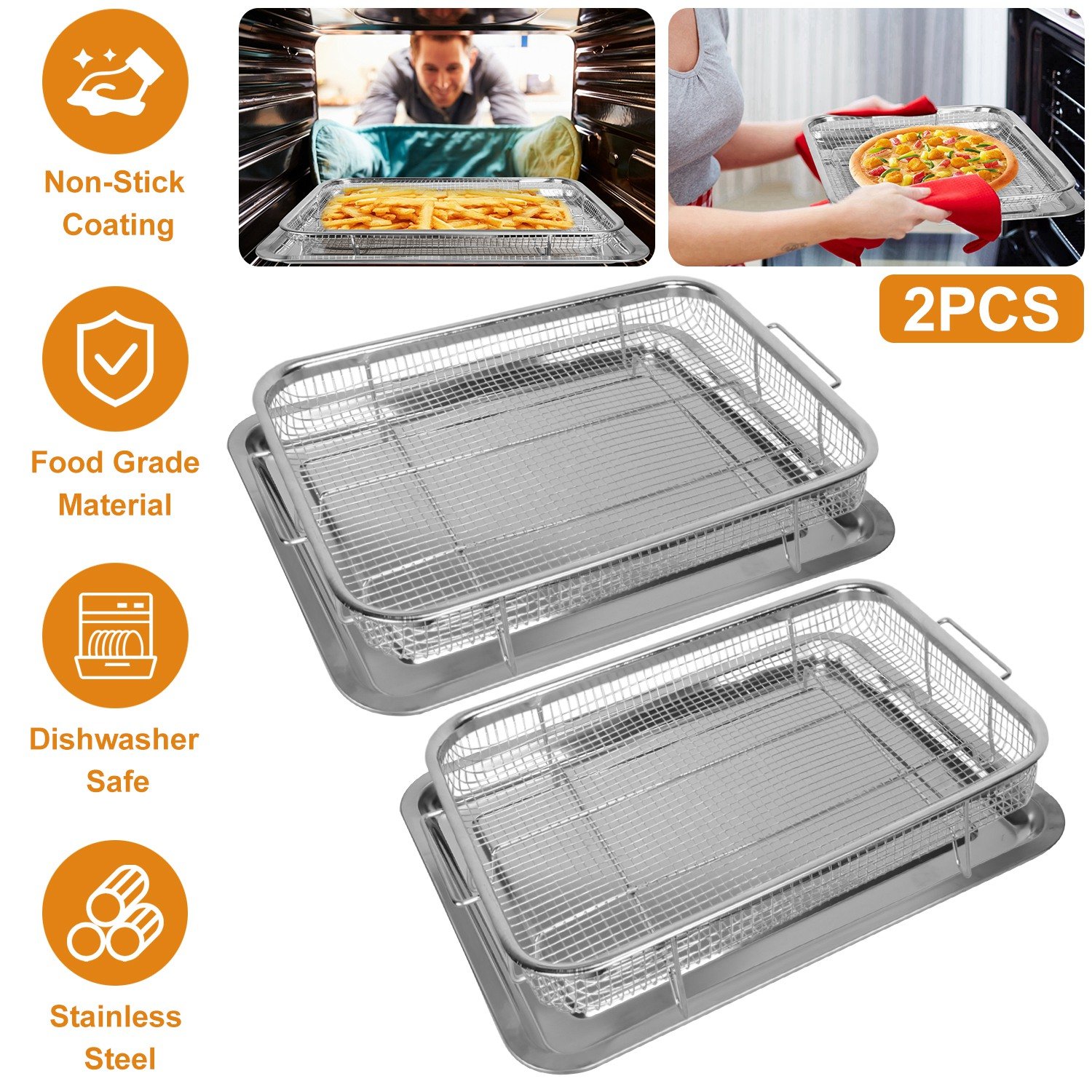 Home > 2Pcs Air Fryer Basket Tray 15.35x11.61in Stainless Steel Rustproof Non-Stick Oven Pan and Tray For Bake Grill Crispy Food Dishwasher Safe