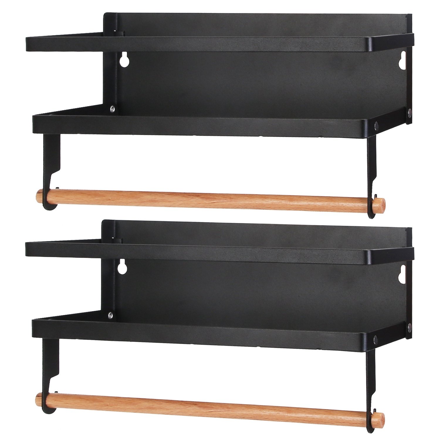 There are never enough countertop working areas in kitchen, especially for apartment or small kitchen. Our 2pcs refrigerator magnetic spice rack is a space-saving and efficient solution to keep your kitchen seasonings in well organized. Moreover, hanging hooks and wooden stick can hold paper, towel, food warp, scissor and more utensils. Strong magnet in the back ensure up to 11lbs load capacity, ensuring your glass bottles secure and stable. Rustproof carbon steel construction is built to last and easy to clean. Perfectly fit for any metal-absorbing surfaces, like refrigerator, washing machine, coffee maker, microwave and more.