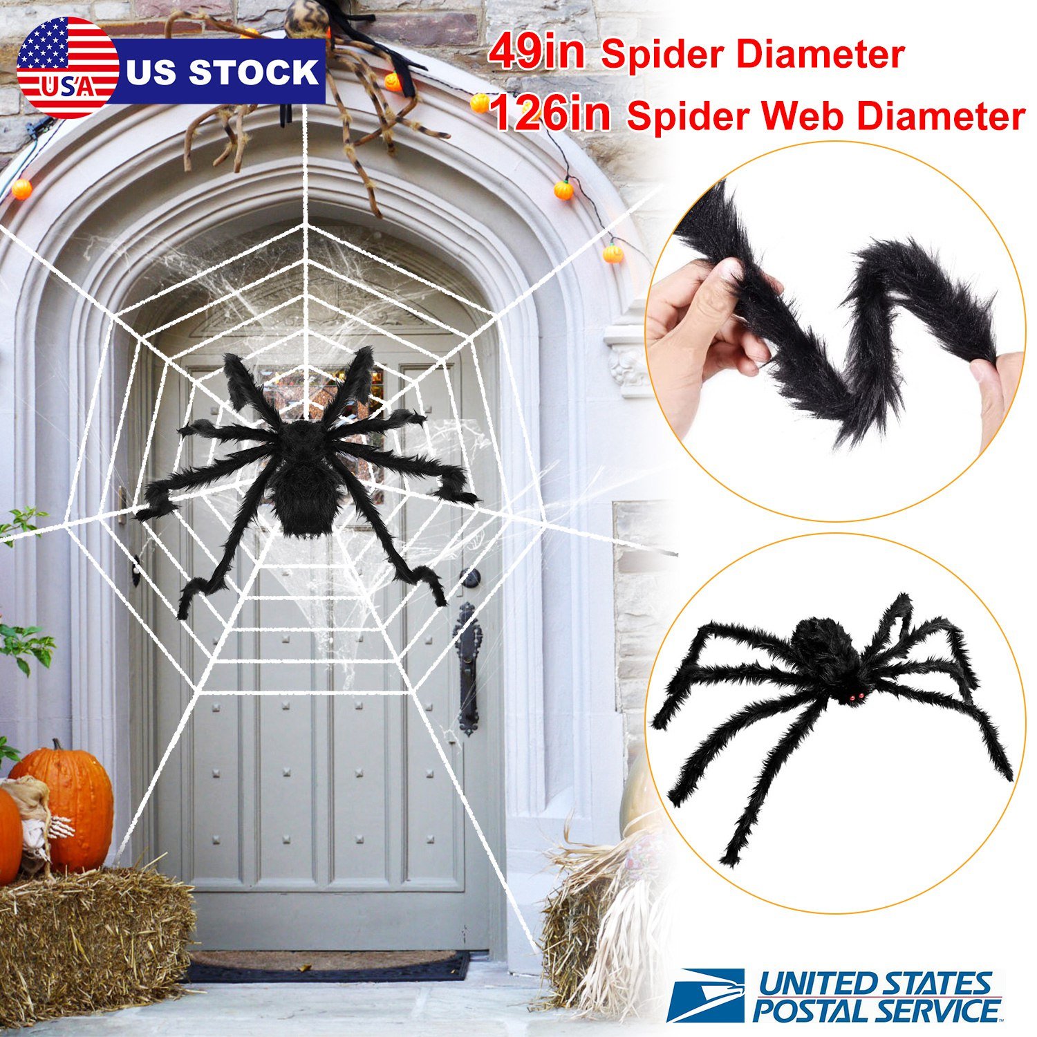 Halloween Decorations Spider Outdoor 49inch Halloween Spider with 126 inch Tarantula Mega Spider Web Hairy Poseable Scary Spider Outdoor Yard Creepy D