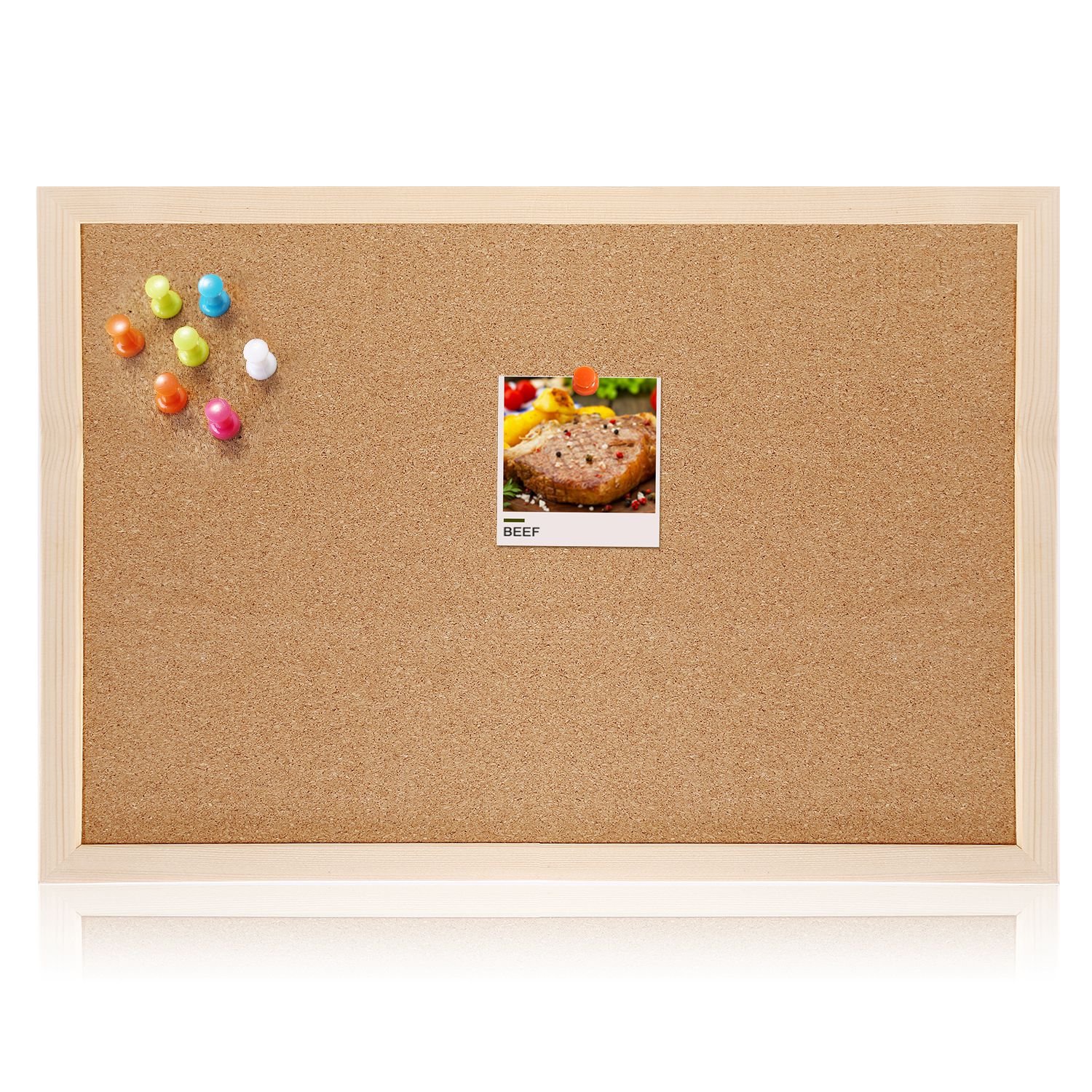 Our cork board is made of premium natural cork and solid wood frame, 100% safe, non-toxic and odorless. The well-polished frame is smooth and comfortable to hold without hurting your hand. The reusable cork board is very easy to use, you can pin your notes, messages, photos and any other papers to the board by using the included colorful pushpins. There also is a hemp rope and 2 steel hangers for you to hang the board on the wall horizontally or vertically, which can be finished in short time. The light-weight ensures the board won’t fall easily. We offer you 4 optional size (S, M, L and XL),you can choose your size according to the space and your needs. The cork board is suitable for multiple occasions: you can use it in living room for photos, study room for notes, office for working memo, and in school and shops for posters and advertisements.