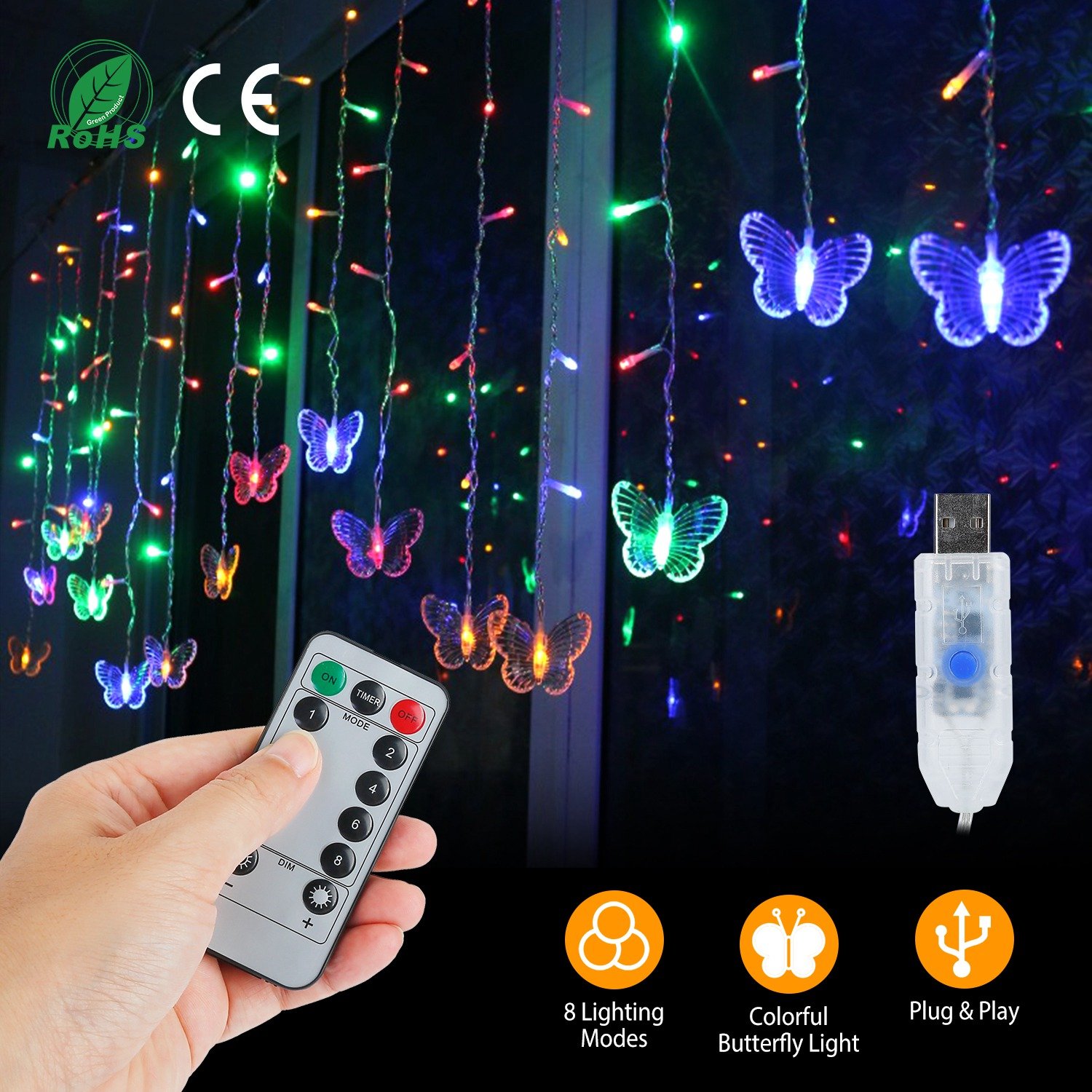 Home > Butterfly Curtain String Lights USB Powered Colorful LED Fairy Lamps w/8 Modes 96 LED Remote Control 11.5ft for Bedroom Weddings Christmas Party Decor
