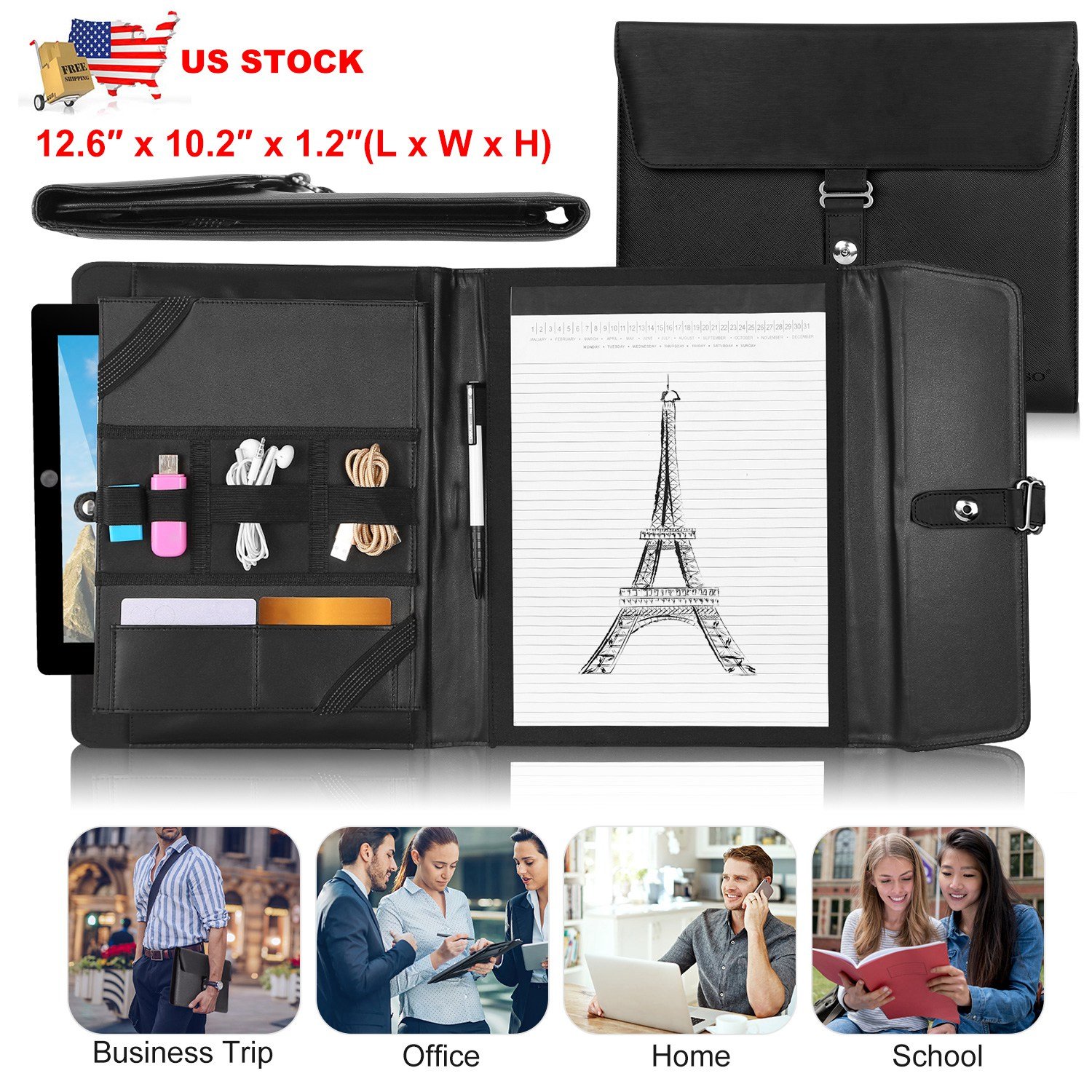 Our padfolio portfolio holder is carefully crafted with useful features including 1 pen holder, 2 card holders, 3 earphone/cable holders, document pockets and 9.7 inches tablet holder. Great to keep your stuff organized, while it can effectively protect your daily essentials against dust, shocks, bumps, scratches, etc. Moreover, with right size (12.6 x 10.2 x 1.2in after folding) and weight (1.4lbs), it will not add additional load to you; Sleek and simple black design, it will be suitable for your style whether you are a student, a professional or an entrepreneur, and be a wonderful gift.