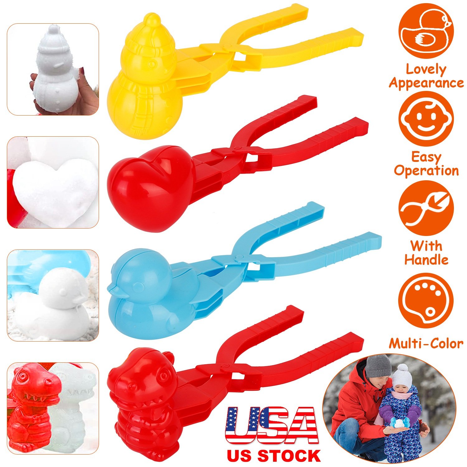 Winter\'s coming! Snowball fighting is a fun outdoor activity in the winter time. You can get lots of fun in snowball game. With these 4-shape snow molds for kids, which can promote their creativity and curiosity, easily and quickly make snowballs to beat your friends! A must-have winter toys and ideal gift for kids in winter!